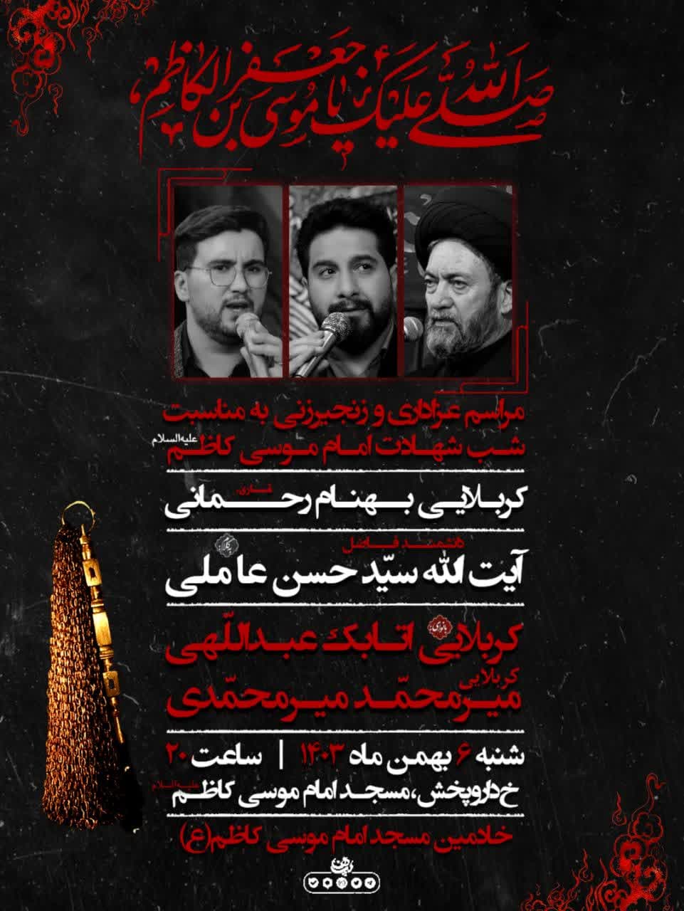 اطلاعیه | مراسم عزاداری و زنجیر زنی به مناسبت شب شهادت امام موسی کاظم(ع)