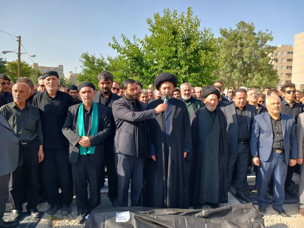 اقامه نماز میت بر پیکر حاج یونس منصوری دانشور توسط آیت الله عاملی